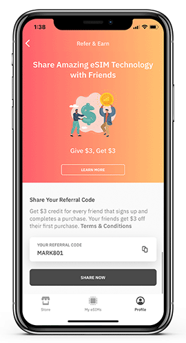 They get US$3 off their first eSIM purchase when they use your referral code when they sign up or at checkout.