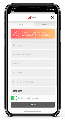 Airalo's mission is to help you stay connected with your loved ones no matter where you are. We rarely go on trips alone so here's a little something that you can give to your fellow travelers - US$3 off their first eSIM.