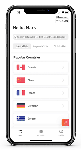 Use your earned credits to buy any eSIM or top-up. Choose the Airmoney payment method at checkout.