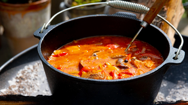 Rich, smoky goulash cooked the traditional way, low and slow in a cauldron and loaded with paprika, peppers and tender beef. / Adobe Free StockDar1930