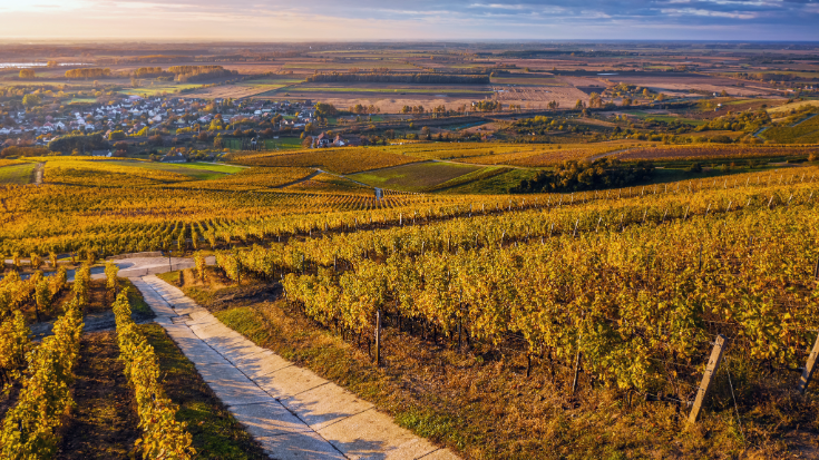 The vineyards of the Tokaj wine region, where Hungary's renowned Tokaji Aszú is produced, with the town of Tokaj beyond. / Adobe Free Stockzgphotography
