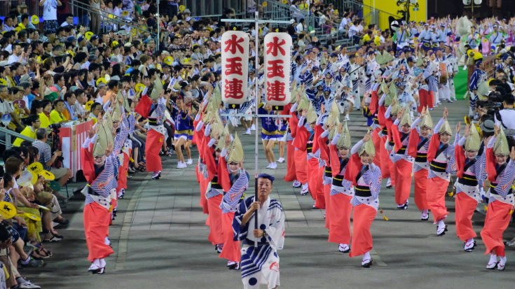 - Awa Odori, Tokushima, August - Street-side viewing of energetic traditional dancers in full costume.