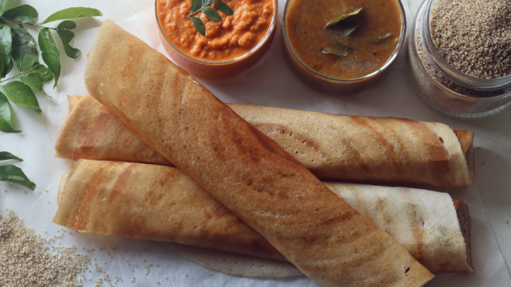 Often stuffed with spicy potato masala and served with chutneys, think of them like a breakfast burrito's Indian cousin.