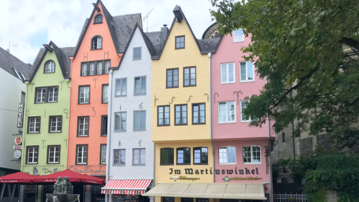Wander along the Rhine promenade for classic riverfront shots. Or capture the pastel façades of Fischmarkt, one of the most photographed spots in the city.