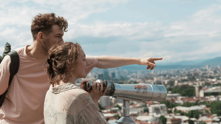 A couple on a city break. They use map apps throughout the day, check restaurant reviews and city guides, post photos and videos on social media and make short video calls home. They're likely to go through around 0.8 - 1 GB a day each.
