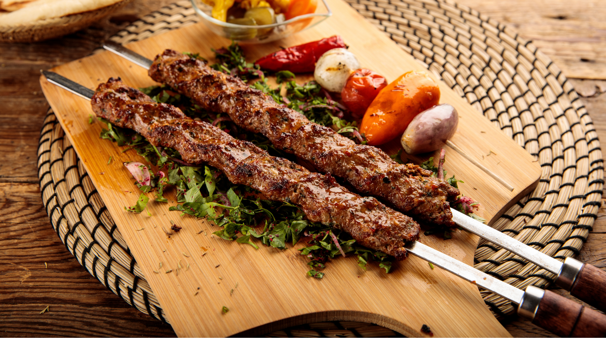 Serviert wird Kebap meist mit Fladenbrot oder Reis, dazu kommen Salat, gegrillte Tomaten, Paprika und oft auch ein Klecks Joghurt oder eine leichte Joghurtsauce. Die Gewürze sind aromatisch und kräftig, aber in vielen Regionen nicht extrem scharf.