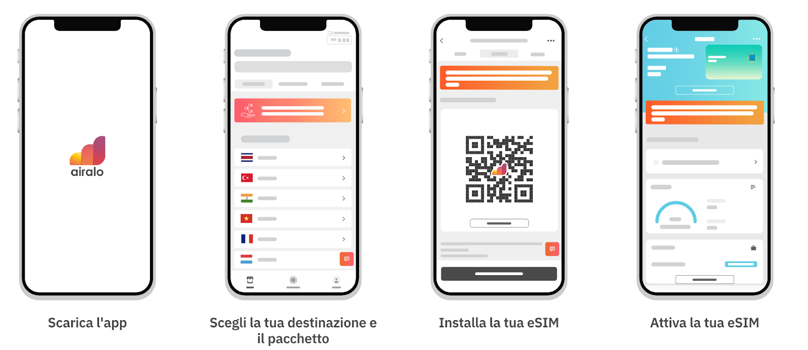 • Tramite app: Segui le istruzioni nell’app Airalo per installare la eSIM.